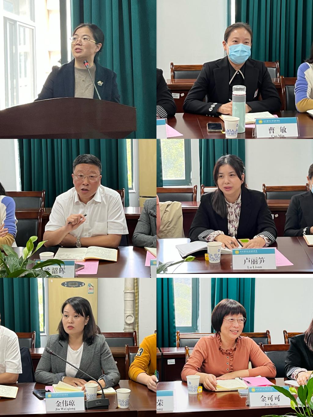 曹敏表示,衢州市人民医院一直在往做出临床护理教学特色方向上努力。梁韶晖对护理混合式教学表示肯定,他指出要将操作与理论结合起来,实现理实一体化教学,并对学生毕业论文、实习点遴选进行指导。卢丽笋对临床教学统一考核标准,统一命题、阅卷,统一分析的同质化教学以及毕业生帮扶工作提出建议。金伟琼对线上教学资源的质量把控、数字化课程建设、教研室建设、产学合作项目创新上提出要求。金可可对学生课程安排问题提出建议。