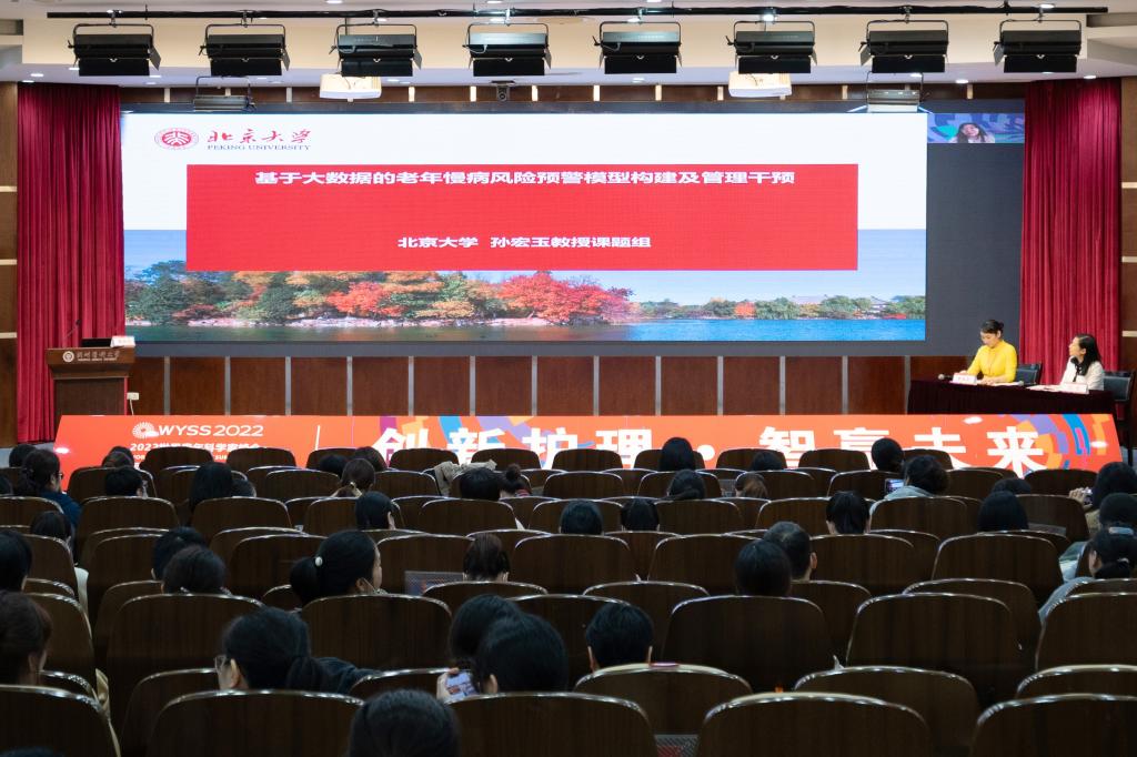 美国护理科学院院士、教育部高等学校护理学专业教学指导委员会秘书长、北京大学52AV 孙宏玉教授作《基于大数据的老年慢病风险预警模型构建及管理干预》和主旨报告。她聚焦大健康理念,围绕社区健康人群、社区慢性病人群、老年人群的需求特点及社区健康管理存在的问题,通过多学科、多中心的共同研究合作,进行老年智能健康检测与管理系统的开发,为运用大数据等信息技术进行护理研究提供了新的思路。