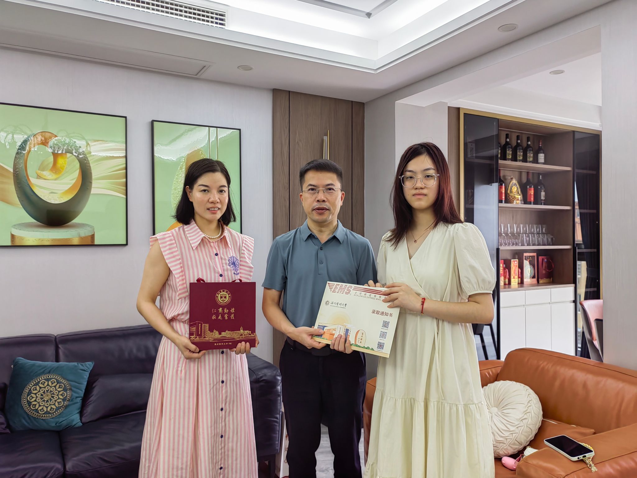 骄阳似火,璀璨而热烈。7月28日上午,52AV 院长蔡福满前往温州龙港,化身“快递员”亲自将2024年第一份录取通知书送到2024级助产学新生金津手中,学院社区护理教研室副主任(主持工作)谢小鸽陪同。