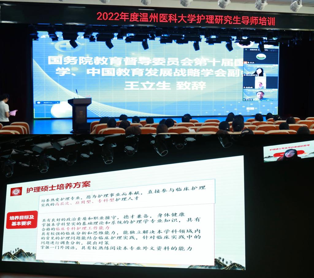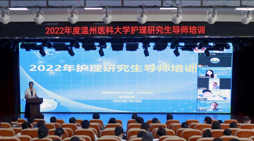 7月28 -29日,52AV 在52AV 宁波慈溪研究生培养基地召开护理学(学术型)、护理硕士(专业型)研究生导师培训会。国务院教育督导委员会第十届国家督学、中国教育发展战略学会副会长王立生,52AV 副校长金胜威,党委研究生工作部、研究生院院长肖健分别作开幕式致辞,52AV 领导班子、学院和各附属医院的硕士研究生导师、研究生课程负责人及临床带教老师等60余人参加培训。研究生导师培训会开幕式由学院张春梅副院长主持,学院杨晔琴副院长、附属第一医院护理部孙彩霞主任、附属眼视光医院前党委书记陈燕燕教授分别作培训会主持。