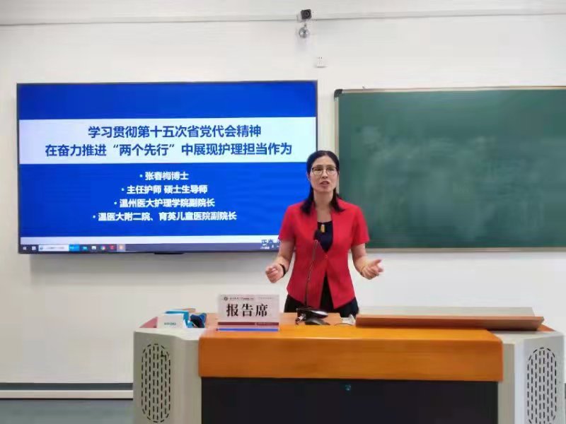 会议还传达学习了省第十五次党代会精神,张春梅从“两个先行”视角下的护理发展对护理工作进行了分析。