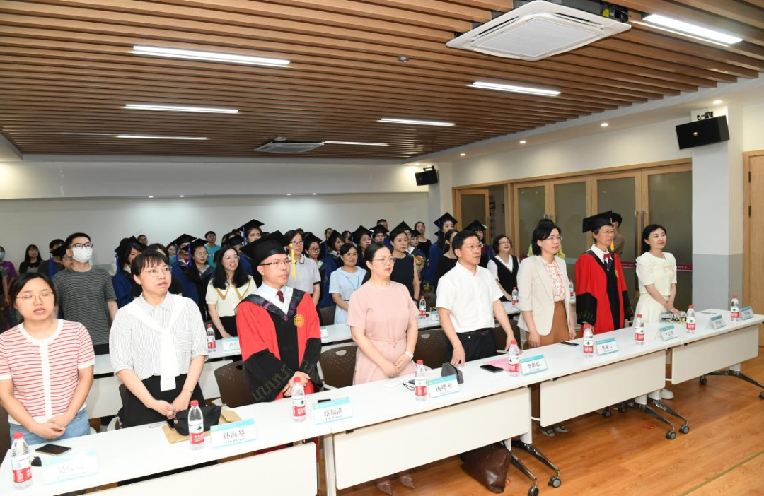 6月23日晚上,52AV 召开2022届硕士研究生毕业典礼暨学位授予仪式,为10位全日制硕士毕业生及23位同等学历硕士毕业生授予学位。学院党委书记李旭东、党委副书记陈素云、副院长杨晔琴、副院长张春梅出席典礼,导师代表、学院办公室、教学办公室、学工办公室、团委负责老师、学生代表、毕业生及其家属参加典礼。典礼由张春梅副院长主持。