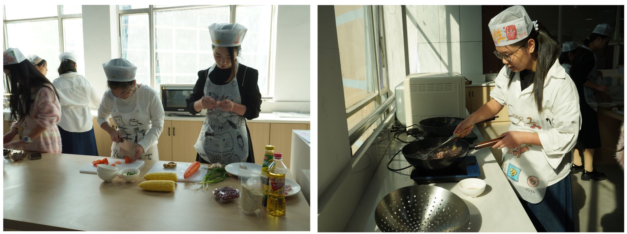 为让异乡学子和校园厨神们展现烹饪才华。在后勤发展处打造的共享厨房举办了一场寝室厨神争霸大赛,23级全体学生寝室积极参与,比赛过程中,各寝室成员团结协作,刀法舞动、锅勺翻飞,共同烹饪出色香味俱全的佳肴,展现了寝室间的团队精神和竞争活力。活动不仅为同学们提供了展示烹饪才能的机会,也是一次放松心情、享受烟火气的体验。同学们在活动中收获友谊与欢乐,在劳动中感受温馨与和谐,共同品尝美食带来的快乐。