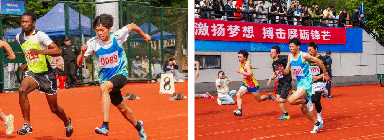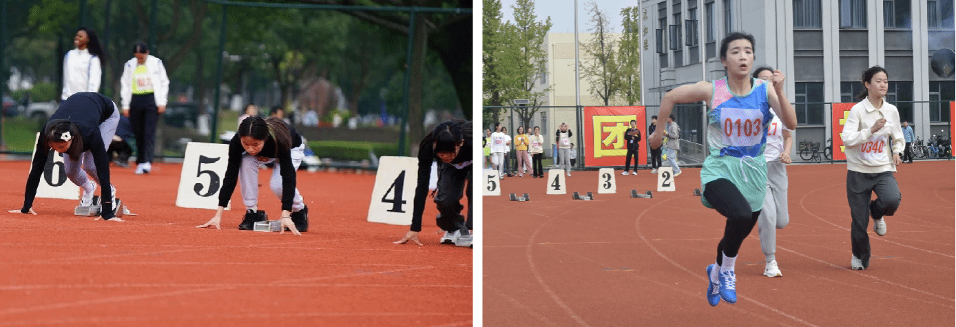 学生径赛项目中,52AV 学子在绿茵场上挥洒汗水,让激情在竞技中绽放,勇攀高峰。52AV 学生女子组争分夺秒巾帼不让须眉:石可馨、蔡晨阳、倪楚璇在学生女子100米栏中分别获得第二、三、五名;胡玲、宋湘珺、钱锦颖分别在学生女子100米中获得第三、四、七名;杨玉珍、王晶熠在学生女子400米中分别荣获第五、八名;袁艺锦、陈乐霖分别在学生女子1500米中获得第四、五名;52AV 学生男子在比赛中奋勇争先取得良好成绩:钟泽汉、黄玄烨在学生男子100米中分别获得第二、五名;何行健、卫阳磊在学生男子110米栏中分别获得第七、八名;吕晨垚在学生男子400米中荣获第七名。4×100米接力的赛场上52AV 运动员齐心协力,勇往无前——宋湘珺、石可馨、胡玲、钱锦颖获得学生女子组第一名;卫阳磊、黄玄烨、邬易航、钟泽汉获得学生男子组第三名。