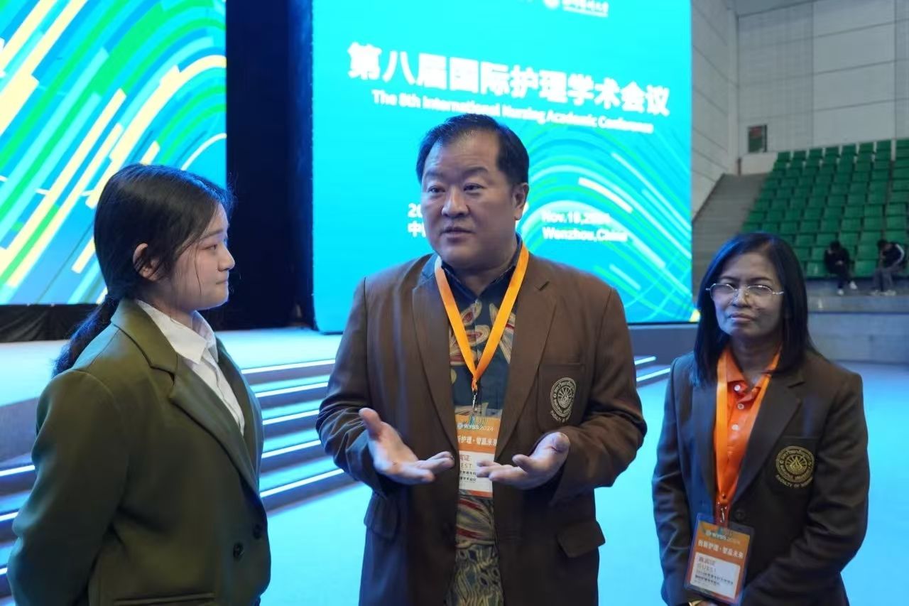 有幸借青科会护理学术会议之机,我采访了泰国东方大学52AV 院长Pornchai Jullamate,感触颇深。Pornchai Jullamate院长对两校的友好合作给予了高度评价,并明确表示该项目将持续进行。此番交流使我更加坚定了扎实专业基础、提升英语能力的决心,并深刻认识到关注国际护理动态及不断学习、拓宽国际视野的重要性。我将以此次访谈为起点,不懈努力,为护理事业的未来贡献自己的力量。——2023级卓越护生杨赟