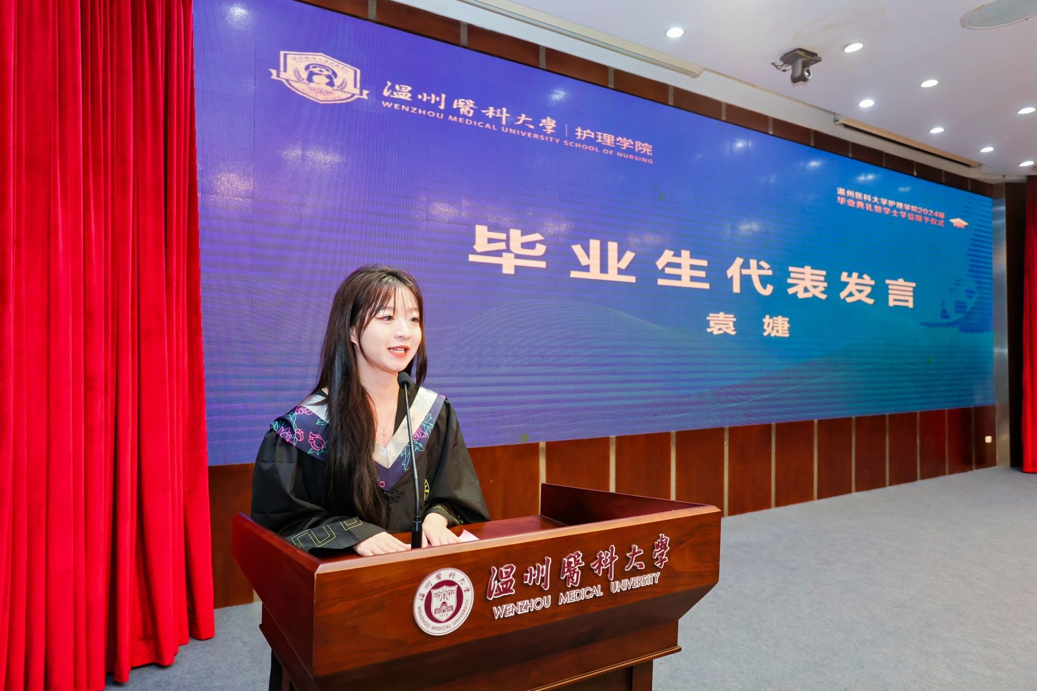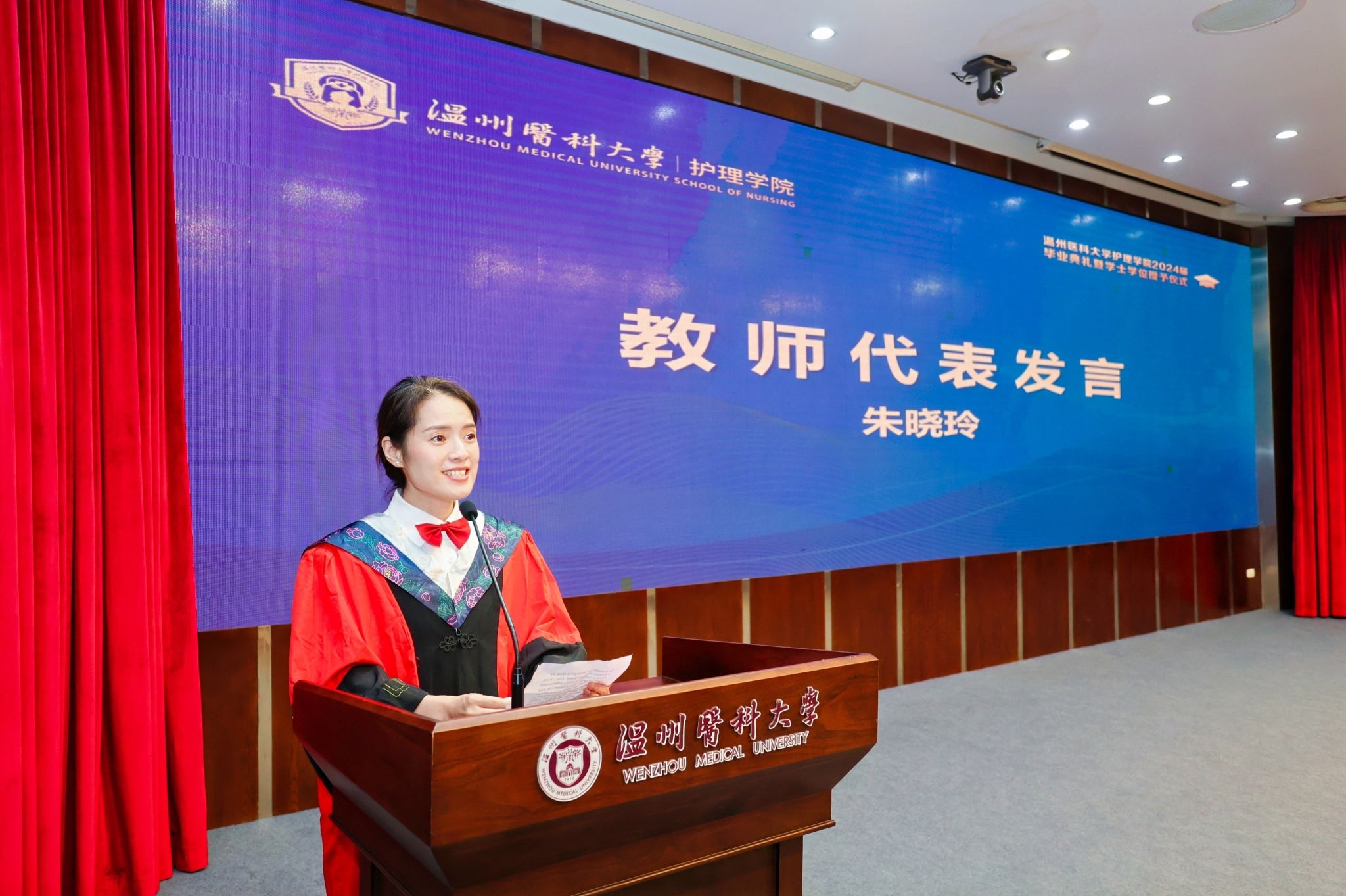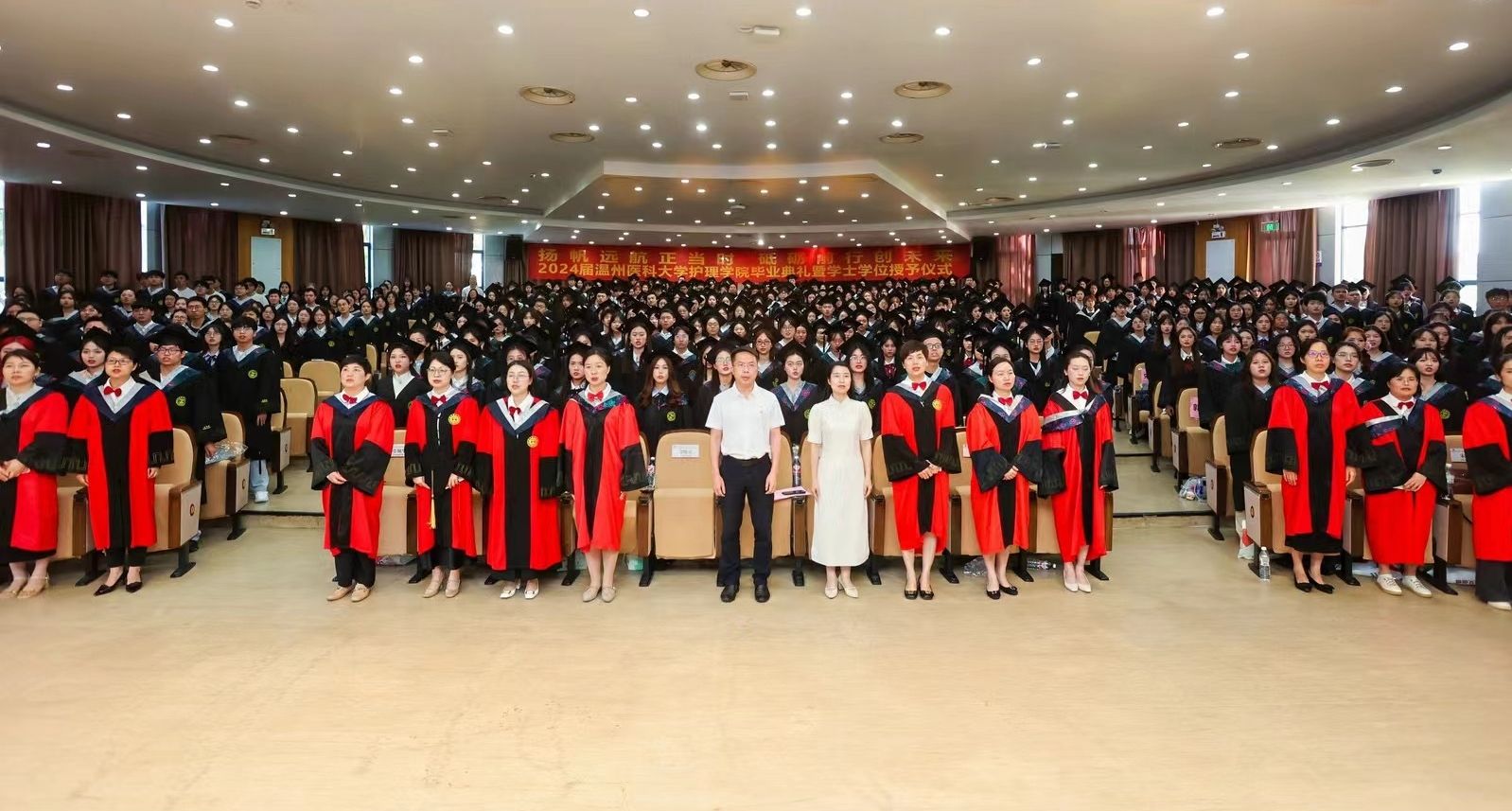 5月29日下午,52AV 2024届本专科毕业生毕业典礼暨学士学位授予仪式在旭光厅隆重举行。院长蔡福满,党委书记王敏,党委副书记金晓童,副院长黄小琼、董超群,各科室负责人,学院、附属医院的教师代表、全体辅导员出席典礼。学院518名毕业生参加此次典礼。典礼由院党委副书记金晓童主持。