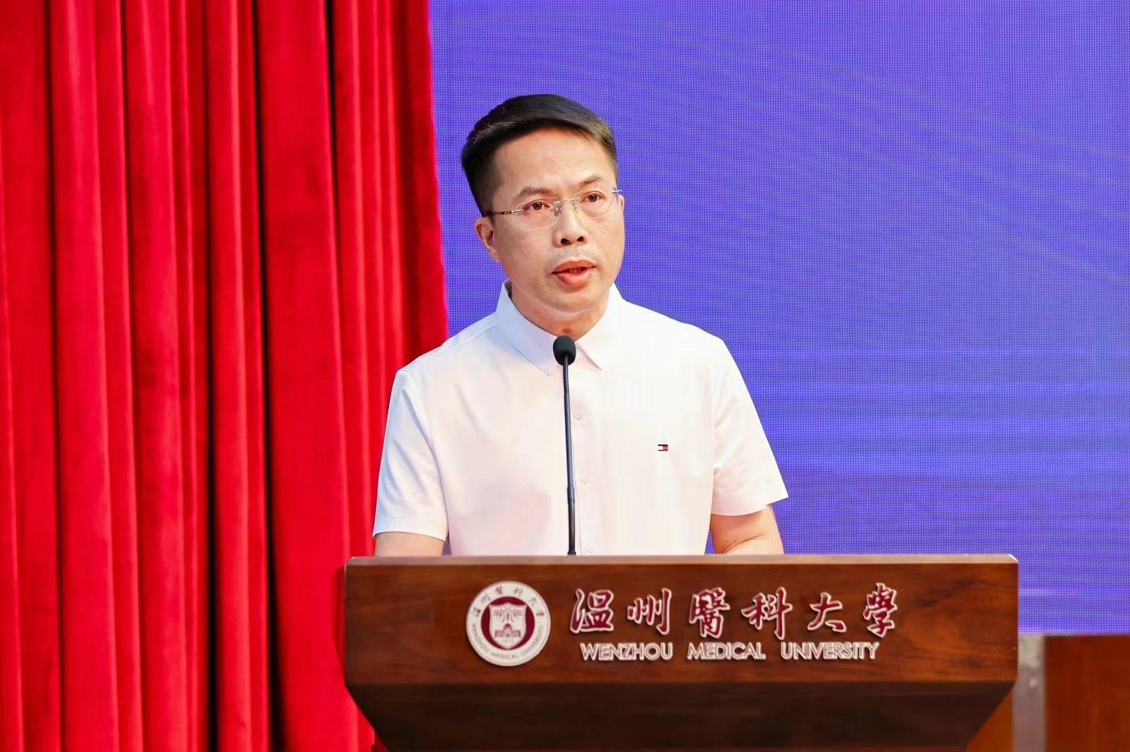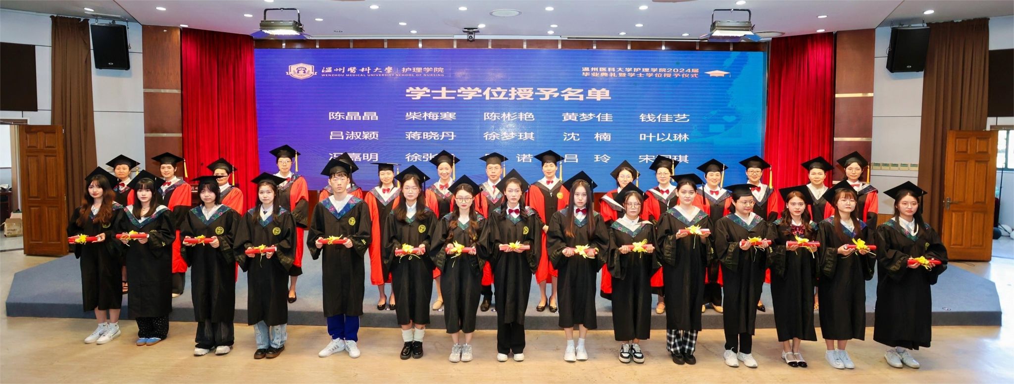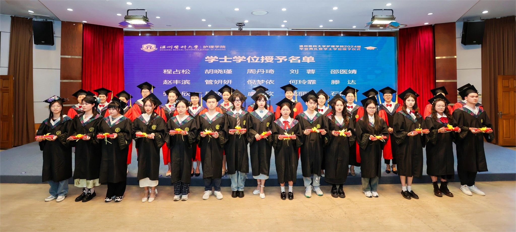 5月29日下午,52AV 2024届本专科毕业生毕业典礼暨学士学位授予仪式在旭光厅隆重举行。院长蔡福满,党委书记王敏,党委副书记金晓童,副院长黄小琼、董超群,各科室负责人,学院、附属医院的教师代表、全体辅导员出席典礼。学院518名毕业生参加此次典礼。典礼由院党委副书记金晓童主持。