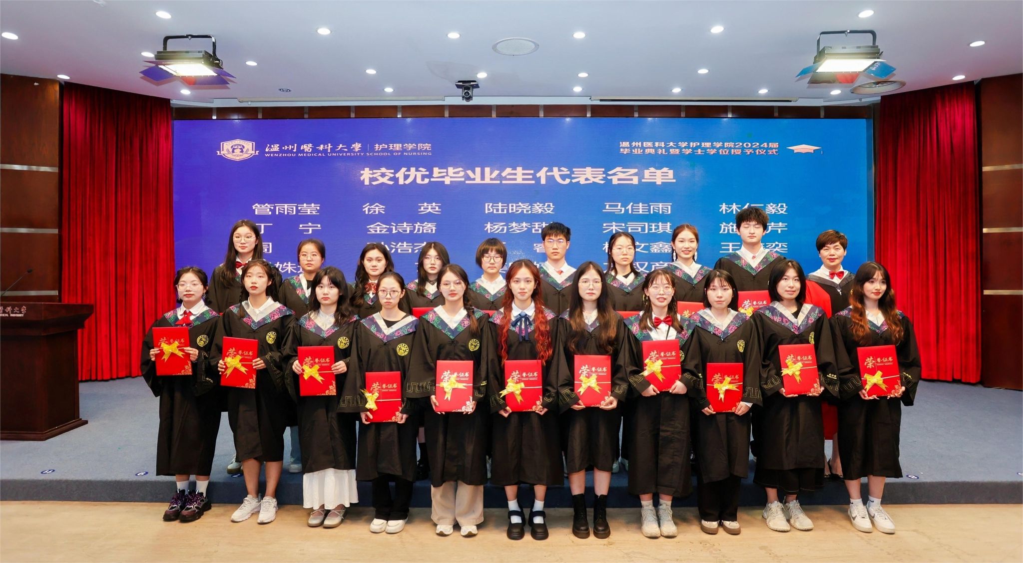 2024届本专科毕业生中有20位学子获浙江省优秀毕业生称号,85位学子获52AV 优秀毕业生称号,35位同学成功考取研究生。其中20护本7班蒋泽凯同学成功考取浙江大学护理学专业研究生;20护本6班袁婕同学荣获校“十佳大学生”荣誉称号,同时她也在第十八届“挑战杯”全国大学生课外学术科技作品竞赛获一等奖;21护专金雨欣同学在全国大学生田径锦标赛女子铅球项目中取得第八名好成绩,刷新我校田径历史;20护本1班团支部成功入选浙江省高校“活力团支部”,多位毕业生在核心期刊及以上杂志发表论文或在各类创新创业大赛中获得佳绩。