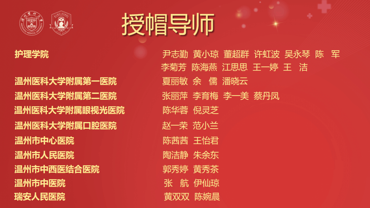 活动还对第十八届“挑战杯”全国大学生课外学术科技作品竞赛、浙江省第三届高校教师教学创新大赛获奖团队,温州市杰出护理管理者、校本科教学质量特别奖,校十佳大学生等21项荣誉获得者进行表彰,通过表彰这批积极奋进、砥砺前行的师生典型,更好地激励新一代护理人继承和发扬“生命至上 人民至上”的人道主义精神,在无影灯下焕发青春光彩。