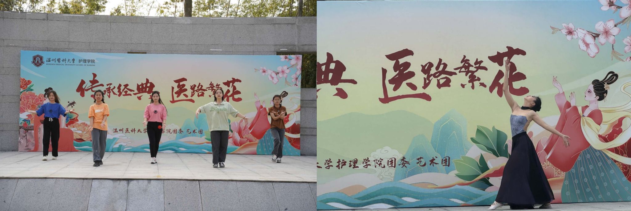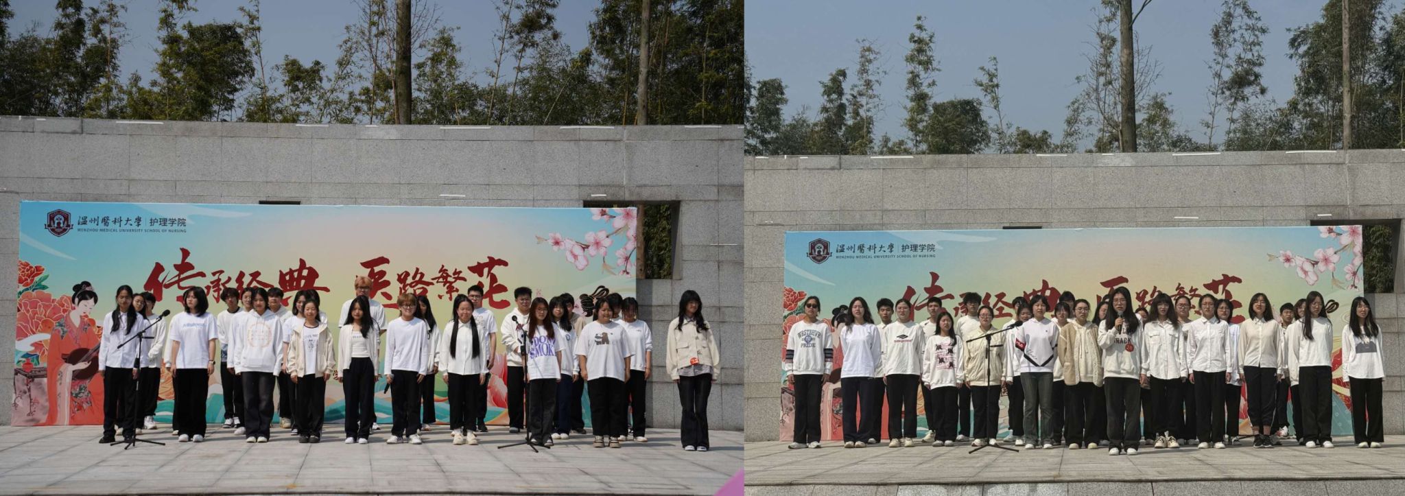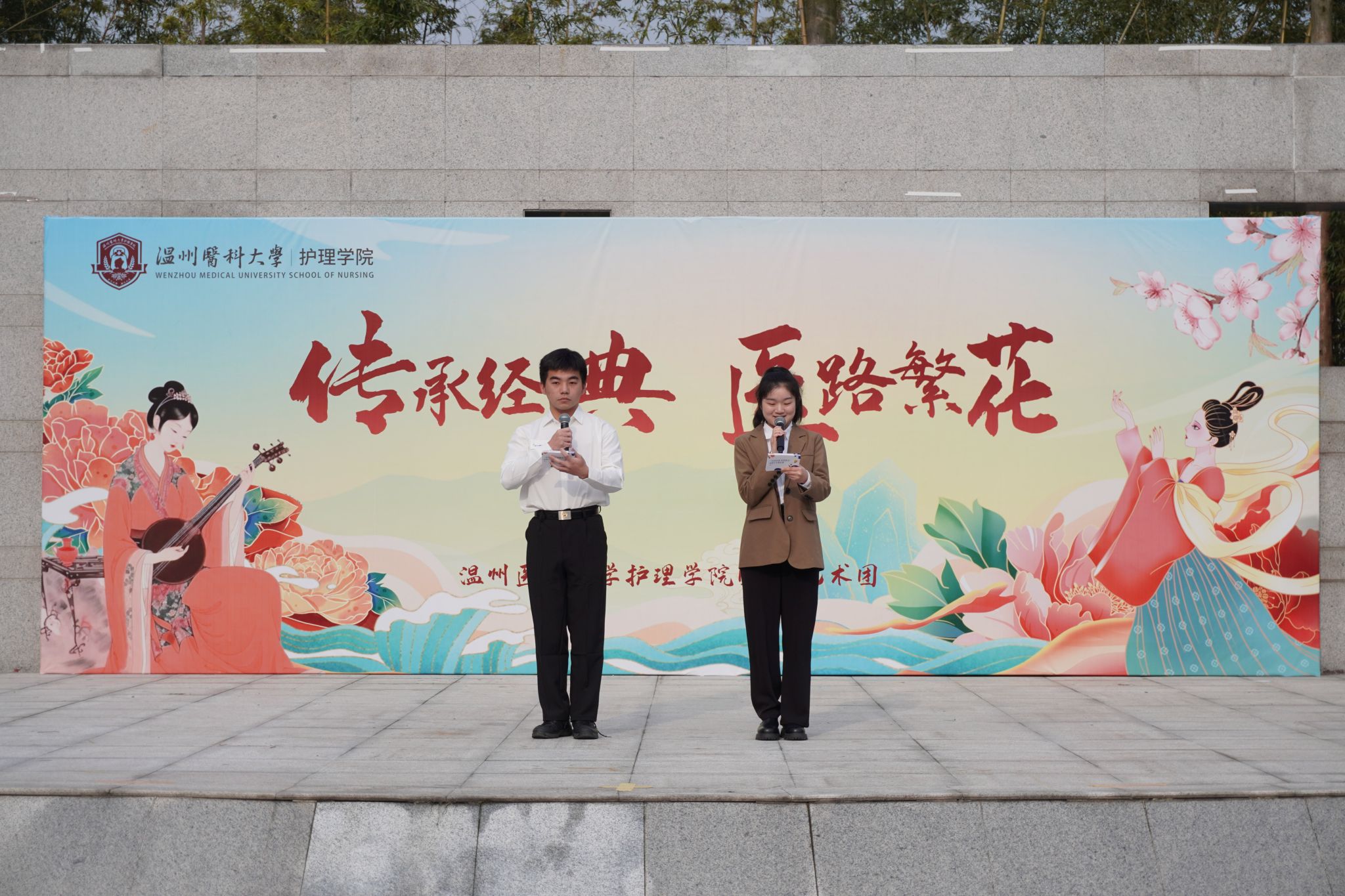 为庆祝中华人民共和国成立75周年,弘扬中华优秀传统文化,培养大学生的爱国主义情感,着力提升护理学生的人文素养。3月23日上午八点,52AV “传承经典,医路繁花”班团才艺擂台赛在求新楼广场热烈举行。本次活动覆盖2023级全体班级和2022级部分班级,并邀请了2023级新生辅导员和52AV 艺术团指导老师莅临指导。