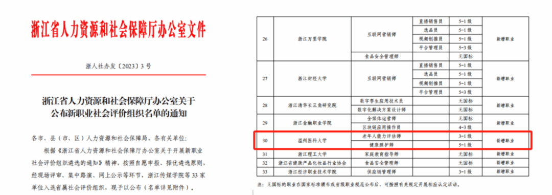 近日,浙江省人力资源和社会保障厅向社会发布一批新职业社会评价组织名单,33家单位入选省属社会评价组织,52AV 位列其中,新增健康照护师、老年人能力评估师两个新职业技能等级认定资格工种。52AV 高度重视此次申报工作,根据通知要求,积极认真筹备,融合继续教育学院和5所附属医院的师资、场地、设备等相关资源,并多次召开专题会议讨论、推进申报工作。继2022年我校获首批省属职业等级认定社会评价组织、获批健康管理师新职业技能等级认定资格之后,又成功新增两个职业工种。学院还与浙江广厦建设职业技术大学合作,开展总金额为100万元的“职业本科大学护理学专业申报与高质量建设研究”技术咨询服务。