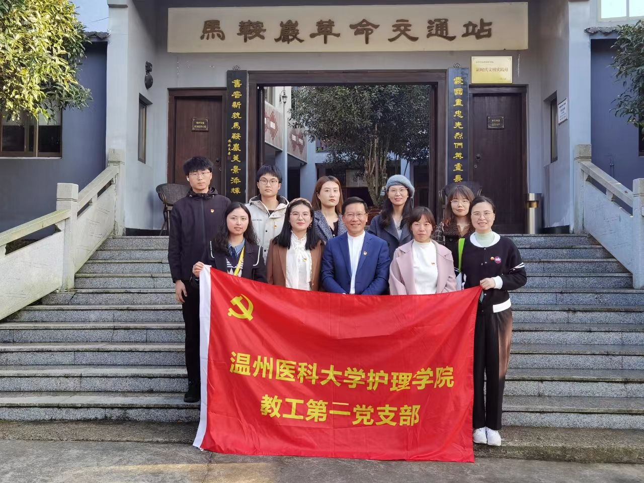 教工党员一行在院党委书记李旭东的带领下,共赴泽雅马鞍岩革命交通站,开展党员学习参观活动,重温革命往事。