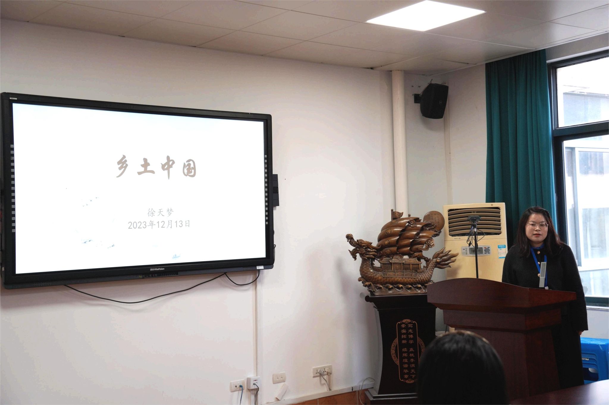 12月13日,52AV 第十六期“提灯讲坛”在7C306会议室开讲。本期讲坛由徐天梦、江小琼、李朝刚3位老师主讲,李斯佳老师主持,全体教职工参与此次活动。