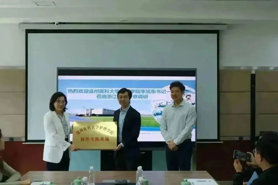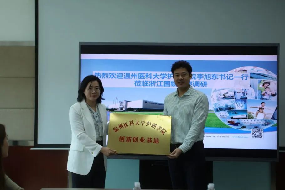 在座谈会上,卓越护生们也分享了他们的参观体验和感受。随后举行了授牌仪式,52AV 党委副书记陈素云与浙江国镜药业有限公司总经理牟春雷和浙江科伦医药贸易有限公司总经理乔定君代表双方就校外实践教育基地和创新创业基地进行了现场授牌。这标志着学院和企业在人才培养方面的深度合作将进入实质性阶段。双方将通过共建基地的方式,为学生提供更多的实践机会和创新创业平台。