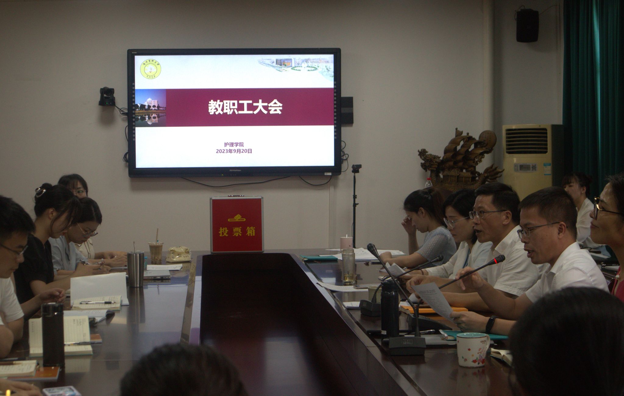 9月20日下午,学院在7C306会议室召开新学期教职工大会,党委书记李旭东讲话,院长蔡福满主持会议。