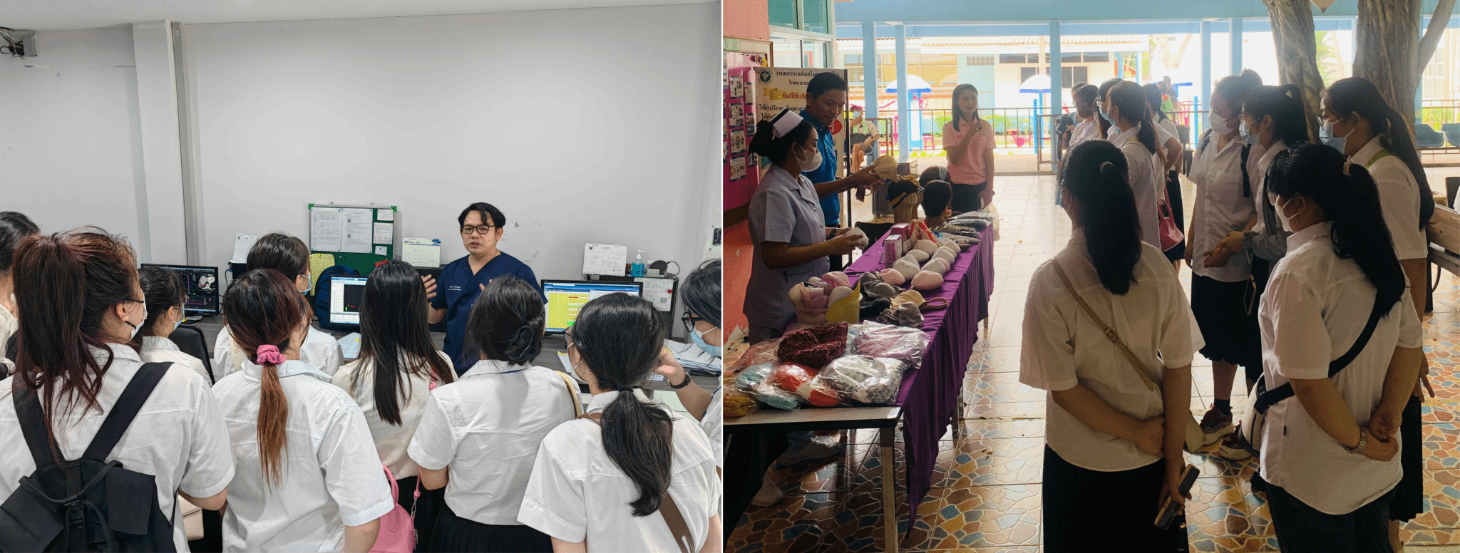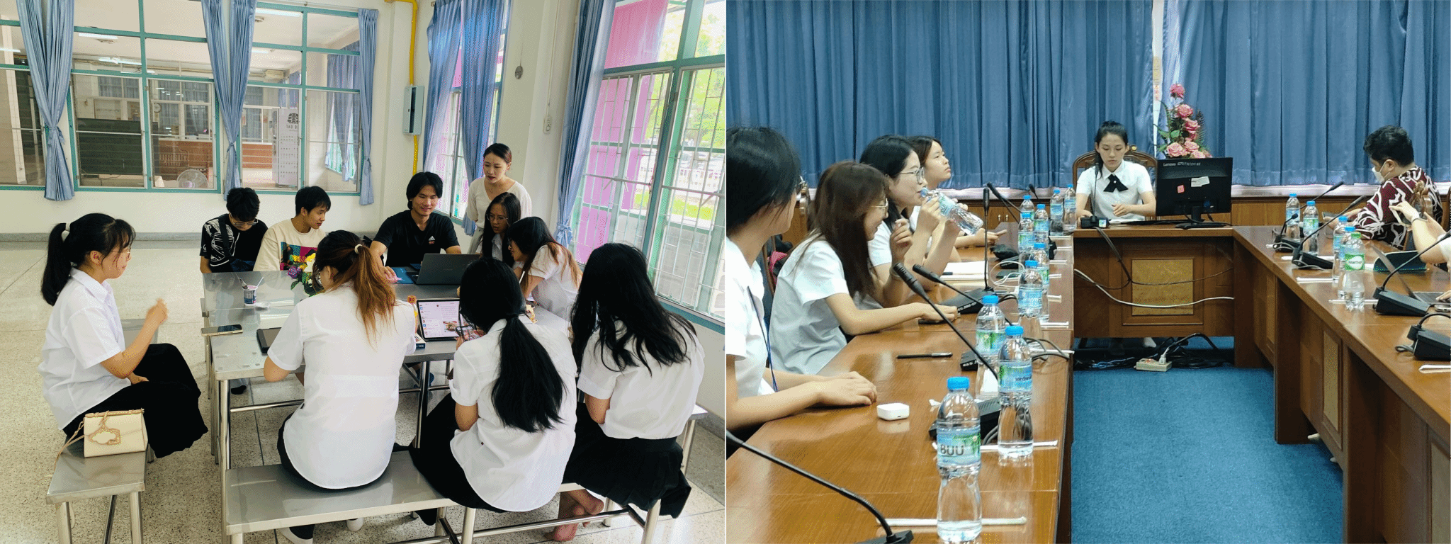在项目交流中期,我们有幸会见了泰国东方大学校长。校长对我们的到来表示热烈的欢迎和亲切的问候,他提到,52AV 52AV 与BUU52AV 建立了长期的友好合作关系,双方互派师生进行交流学习,并表示未来将持续合作,共同见证护理更好的未来。