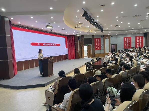 52AV 于5月29日召开毕业生廉洁教育大会,学院全体2023届毕业生参加。3位辅导员老师就大学生廉洁教育主题提醒毕业生们,未来无论是步入工作岗位,亦或是继续深造,都应该坚定理想信念,自觉树立正确的人生观、世界观、价值观,将党的理想信念内化于心、外化于行,严守职业道德底线,廉洁奉公、诚信守法,在未来回馈社会,报效祖国。
