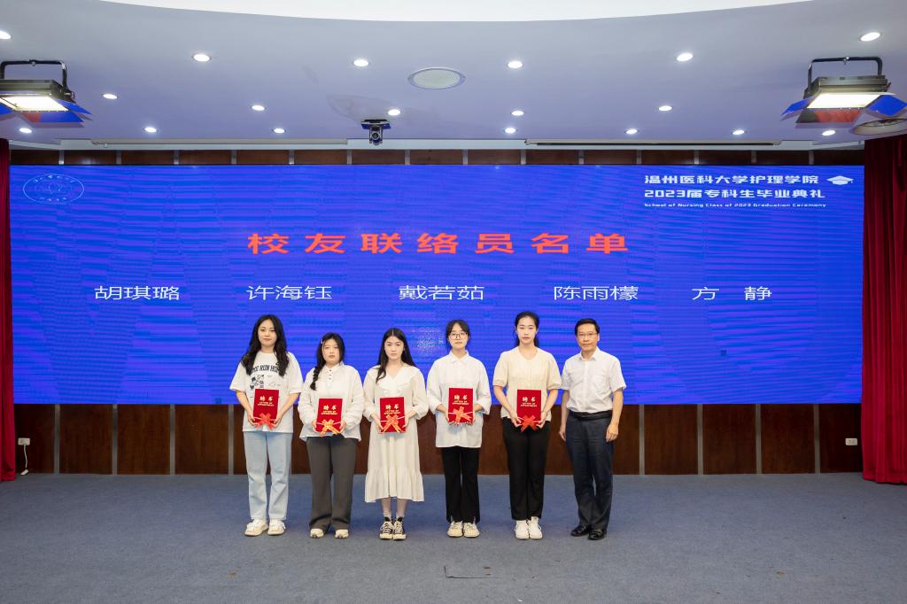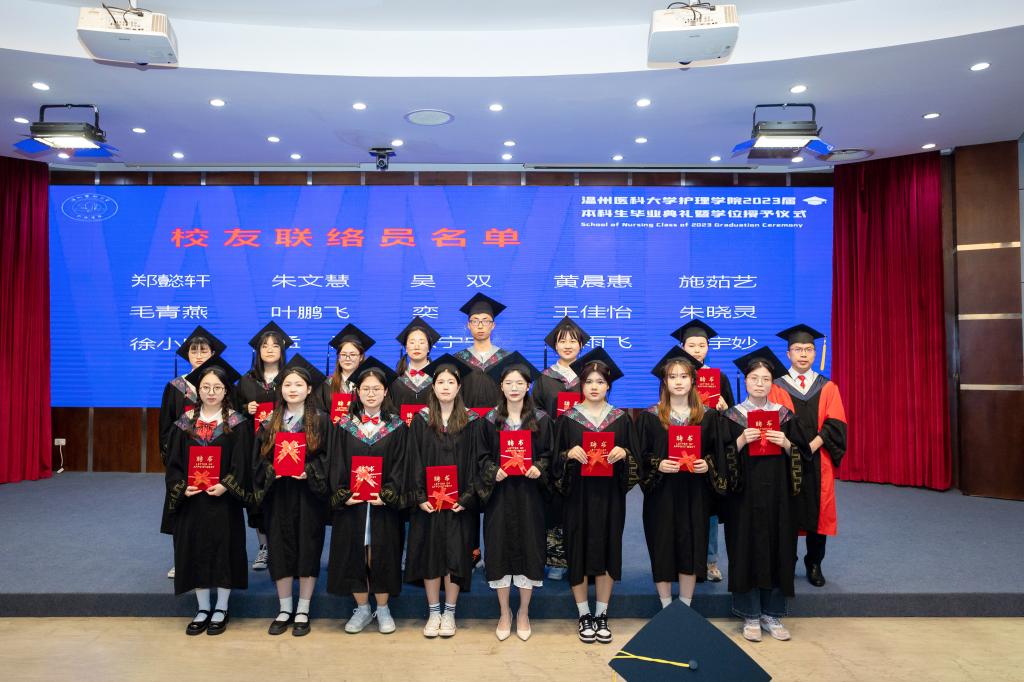 2023届毕业生有23位学子获浙江省优秀毕业生称号,99位学子获52AV 优秀毕业生称号,多位同学在核心期刊发表论文并参与各类国家级、省级创新创业大赛获得佳绩。为激励毕业生砥砺奋进、笃行致远,李旭东书记为省优毕业生代表颁发证书、为卓越护生颁发结业证书,蔡福满院长为校优毕业生代表和校友联络员颁发证书。“收到这份证书之后我很激动,内心充满了自豪感,今后定不负众望,勇毅前行。”省优毕业生代表奕婷如是说。