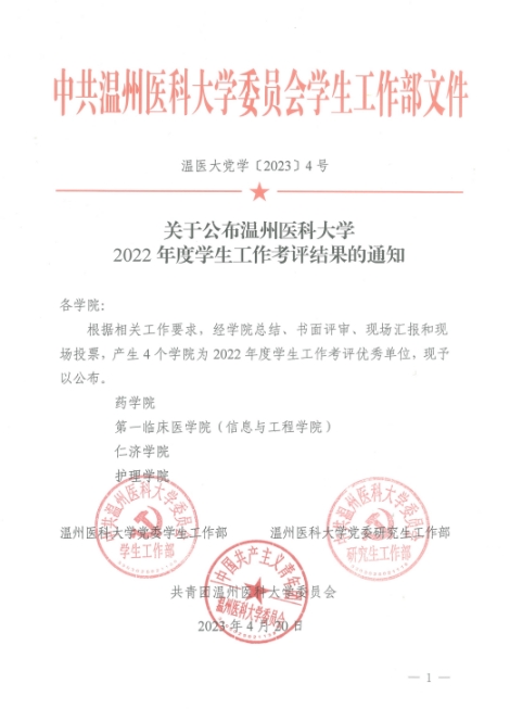近日,由校学生处、研究生院、团委联合组织的2022年度学生工作考评中,经学院总结、书面评审、现场汇报和现场投票,52AV 荣获52AV 2022年度学生工作考评优秀单位,全校仅有4个。