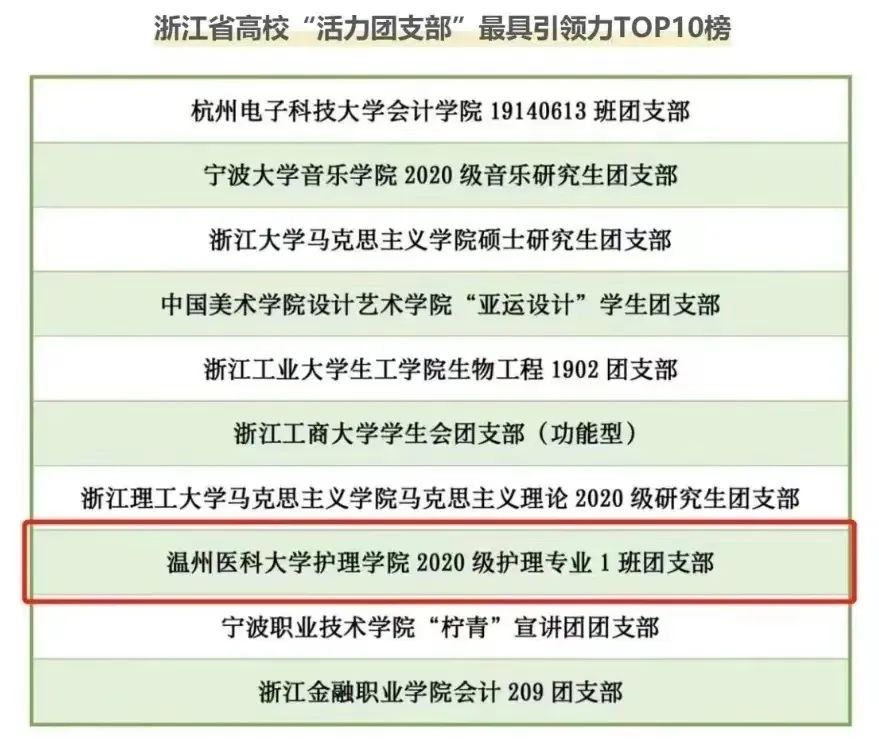 经团省委、省学联评审,52AV 20护理1班团支部成功入选2022年度浙江省高校“活力团支部”最具引领力TOP10榜!(我校共有6个团支部入选)