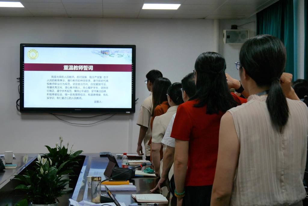 “我是光荣的人民教师。面对国旗,我庄严宣暂:忠于人民的教育事业,履行教师的神圣职责……做一名有理想信念、有道德情操、有扎实学识、有仁爱之心的人民教师。”9月7日,52AV
