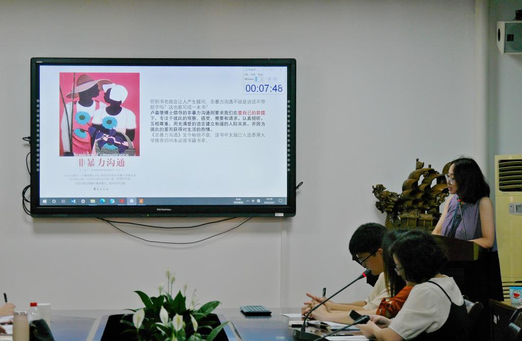 罗欧雯老师分享了《非暴力沟通》一书,认为我们应该在爱自己的前提下多尝试非暴力沟通。那么如何进行非暴力沟通呢?罗老师给出了“观察”“感受”“需要”“请求”4个关键词,具体是指在沟通过程中,要仔细聆听对方所说的话,以尽可能了解情况;要充分表达自己的感受,以便尽可能使沟通更为顺畅;要勇敢去告诉并解释对方你的需求,以让对方更好的去理解你;要真诚地表达我们的需求。并通过分享自己运用非暴力沟通的小故事,让大家印象深刻。