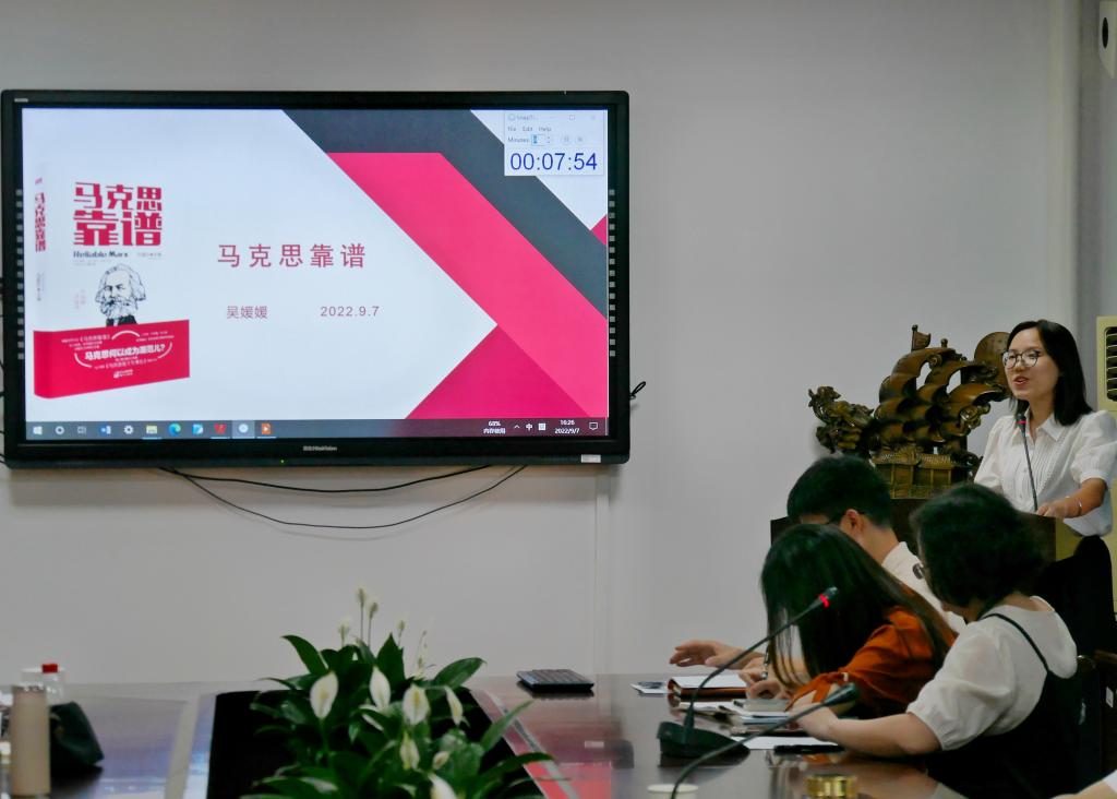 吴媛媛老师分享的是《马克思靠谱》。她通过马克思提出的唯物辩证法、唯物史观、马克思主义政治经济学和马克思主义科学社会主义讲述马克思“理”靠谱,通过马克思与恩格斯的友情、马克思与燕妮的爱情论证马克思“情”靠谱,从不同角度加深了大家对马克思的认识。