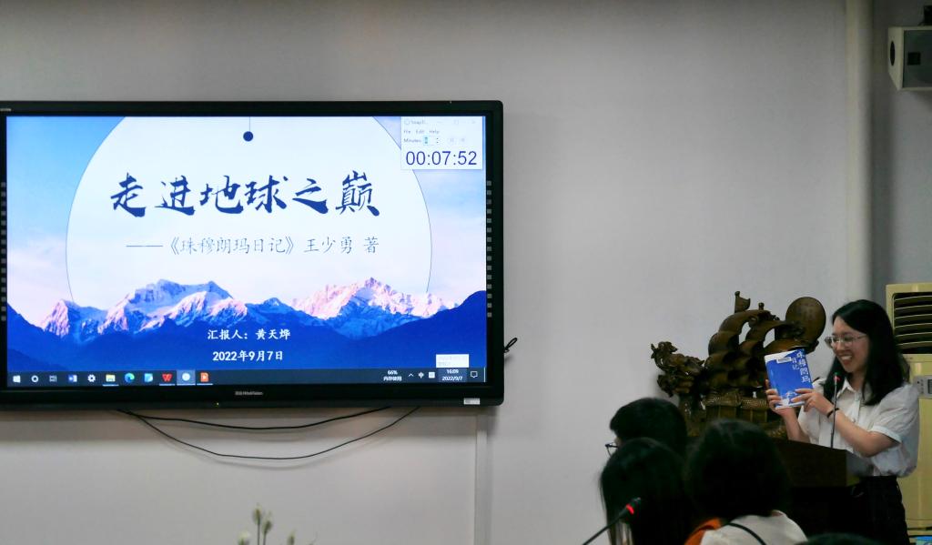 黄天烨老师给我们分享了“走进地球之巅—《珠穆朗玛日记》”。这本日记介绍了珠穆朗玛峰的危险、神秘与纯洁,真实反映了登山测绘队员在极限环境中的工作状态和精神面貌,让我们对那些坚守岗位的测量工作者心生敬意。同时启发我们人生就像一场攀登,我们会遇到坏天气,会遇到陡坡,会下撤,会失败,但攀登本身就是意义,我们应活在当下、享受过程。