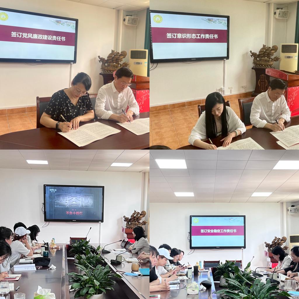 会上,与会人员集中观看了“零容忍”系列警示教育片《不负十四亿》,还签订了2022年党风廉政建设责任书、意识形态工作责任书和安全稳定工作责任书。