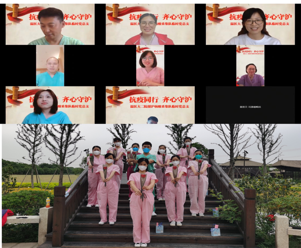 在医院党委书记褚茂平为首的领导们的关心与支持下,组织了以“抗疫同行,齐心守沪”为主题的“五一云联欢”活动、以“关爱护士队伍,护佑人民健康”为主题的国际护士节“云上慰问”特别晚会,线上的节目精彩纷呈,感人肺腑,让身处他乡的队员们也感受到了浓浓的节日仪式感和满满的归属感,很大程度上舒缓了队员们高强度的工作压力,增进了彼此间的感情。