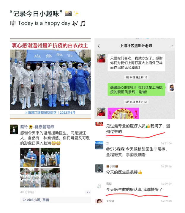 年轻的温医大二院队员们,用规范的七步洗手、轻柔的采集动作及热情的服务态度,赢得了上海各大社区居民及志愿者的一致好评。他们的朋友圈和微博中,频频可见对我们附二核酸突击队的褒奖和点赞。视频《谢谢侬》,更是记录了上海市民对我们温医大二院的赞赏和认可。