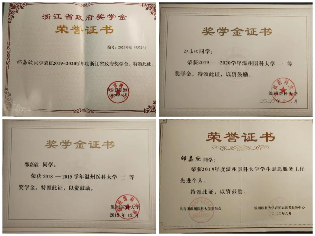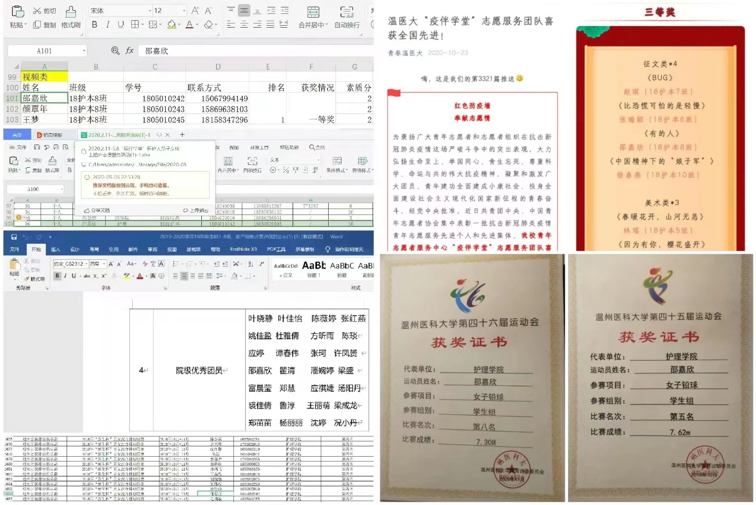 曾累积获得省政府奖学金、校一等、校二等奖学金、院级优秀团员、2019年度52AV 学生志愿服务工作先进个人、原创诗歌获52AV 疫路“护”行·征文类三等奖及学院“搏时”云文创活动(急救知识科普)视频类一等奖等多项荣誉。