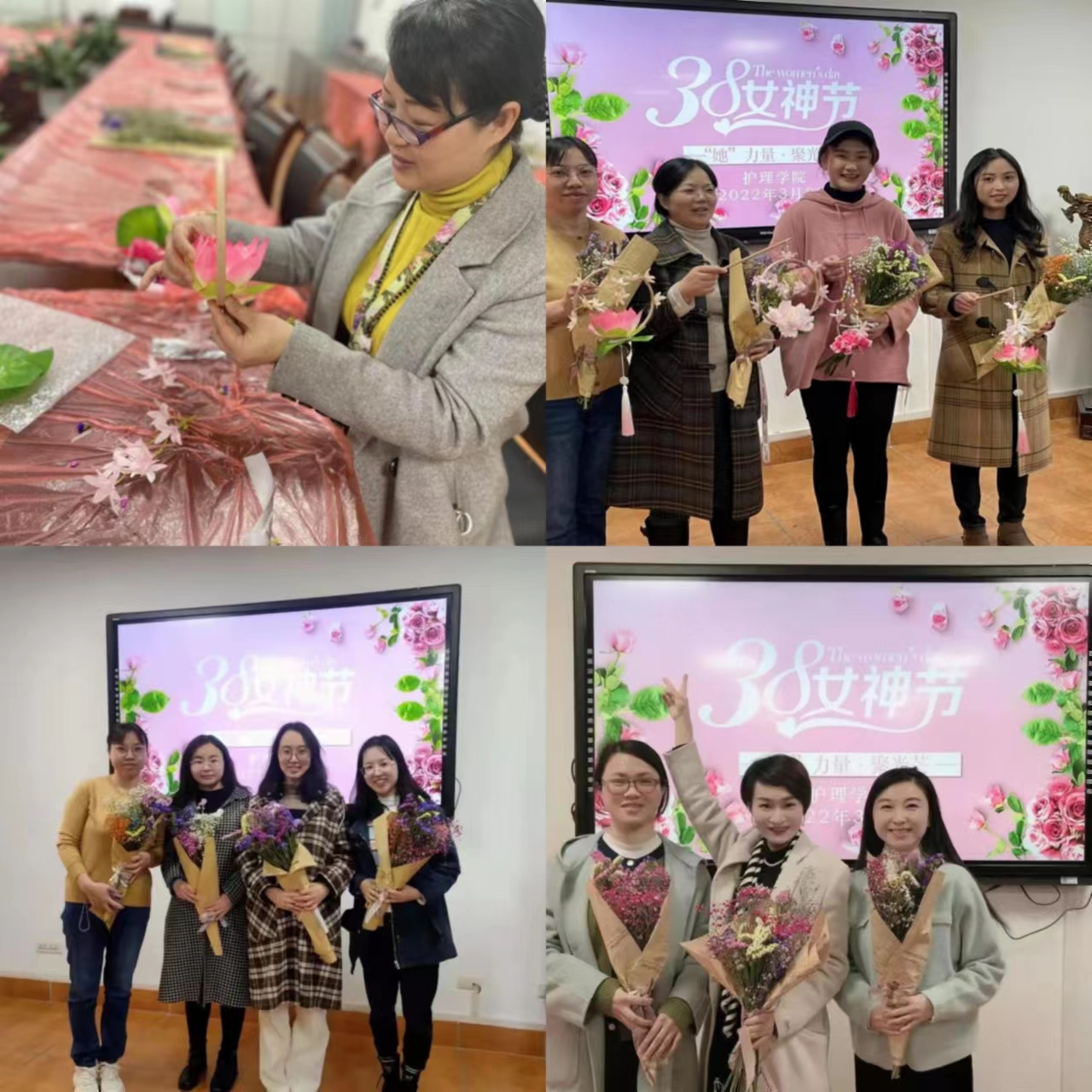 与花相约,最是浪漫。为展示学院老师风采,让全体女员工过一个健康、快乐、难忘而有意义的节日,给每位女老师准备了花材以及花灯。在轻松愉快的氛围中,老师们亲手创作花束、亲手制作花灯,经过半个多小时的制作,逐步完成自己的完美作品。今天的我们都是最美“提灯”女神。
