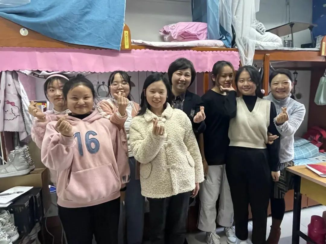 在510寝室,由于六位同学分别来自疆藏川贵豫等5个不同省份,李部长还和同学们唠起了家常,从同学们的家乡、家庭聊到温州的风土人情,同学们热情回应,频频互动,欢声笑语不绝于耳。最后,李部长勉励同学们要进一步明确人生前进的目标方向,学好专业技能,锻炼自身本领,努力提升自我,从而更好地实现人生价值。