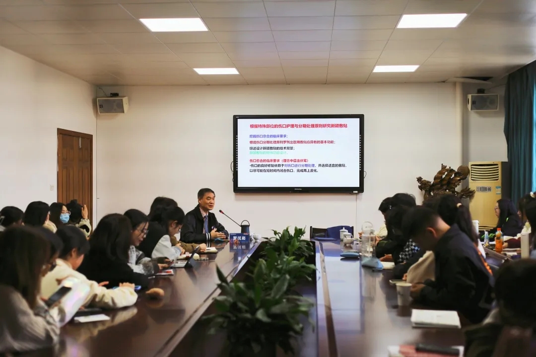 谈到护理创新设计理念,他强调了论题措辞的精准性、摘要的关键性以及首段首句的重要性等对于科研论文写作的价值。罗教授以如何从中医护理中挖掘科研素材为例,从“采用的中药方剂是否有辩证依据”、“生物安全质量指标是如何做指控的”、“敷贴采用了什么基材”等问题入手,一步一步细致讲解,引领大家进行了一次集辩证、严谨、创新于一体的循证设计探索。授人以鱼不如授人以渔,罗教授还分享了科研成长的心路练习,如“写下自己喜欢自己的理由”、“睡前坚持做一分钟心灵健康操”等,还给在座学子布置了一个有趣的回家作业。他强调了好习惯的培养和坚持的重要性,指出了科研非一朝一夕所成,而是日积月累、滴水石穿。
