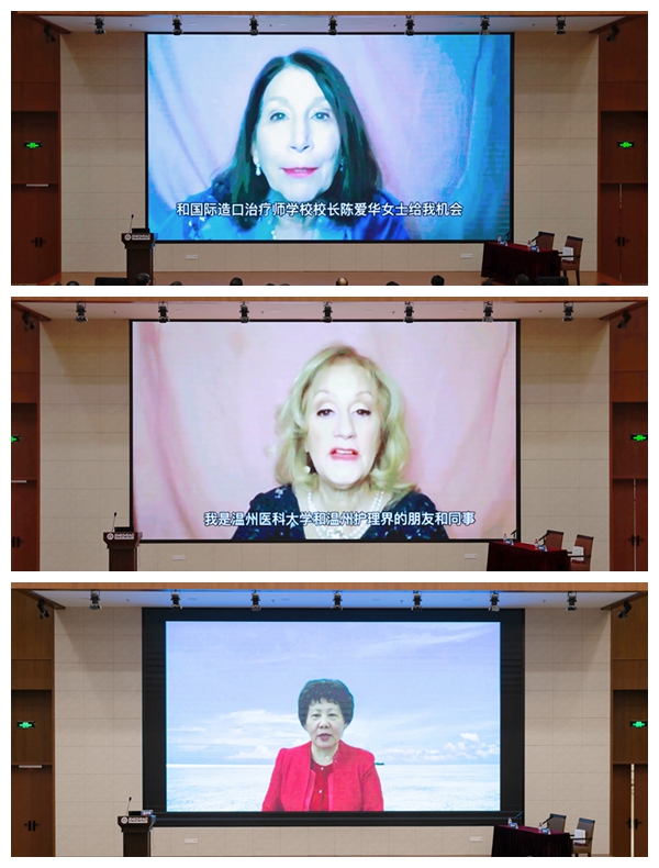 校长、中国工程院院士李校堃,中国工程院院士樊代明、付小兵,美国护理科学院院士伊丽莎白·阿耶洛、凯蒂·卡皮图洛,中华护理学会理事长吴欣娟通过视频致贺词。