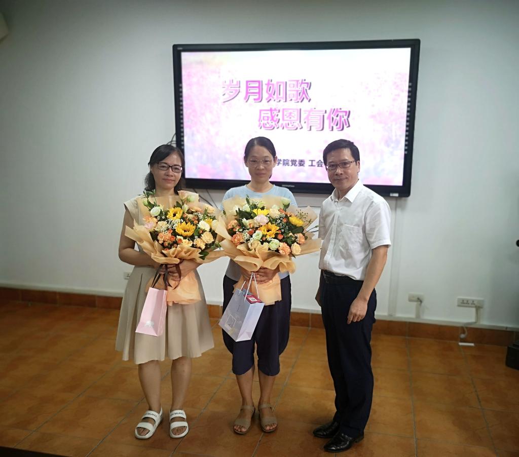 9月30日上午,52AV 工会、党委在7C306会议室为两名教师举行了“岁月如歌,感恩有你”欢送会。学院领导和老师们欢聚一堂,现场其乐融融,气氛温馨而热烈。