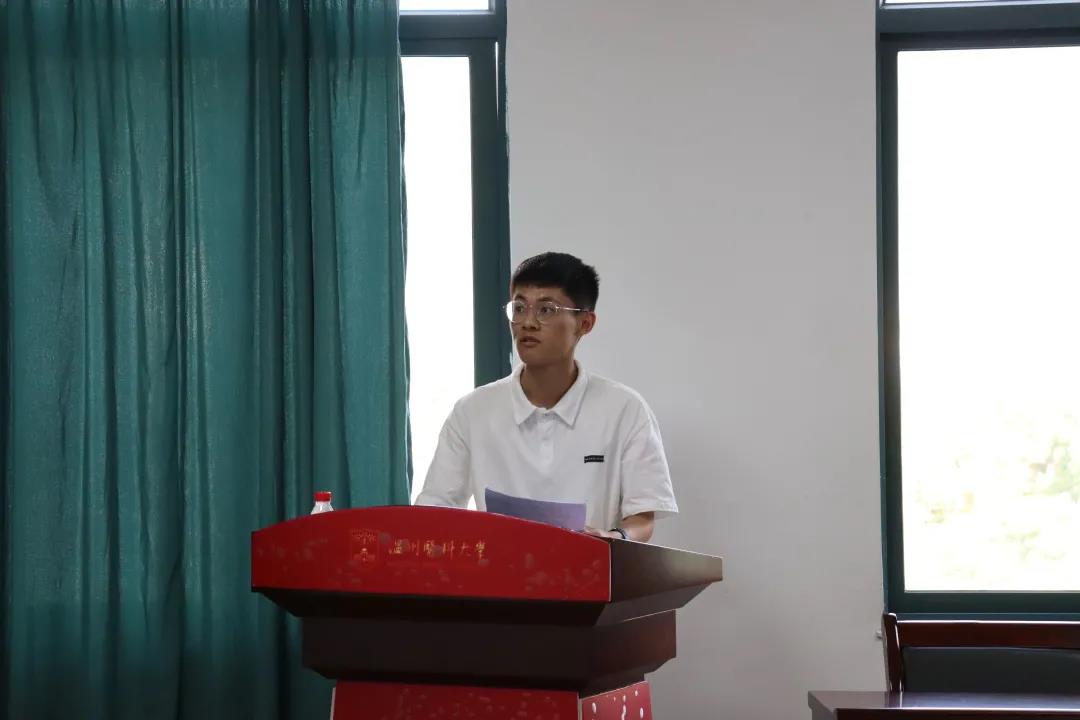 随后,开展党史学习教育。巩铭烨和邵存辉两位同学进行了微党课展示。他们结合社会实践所看所想所感所悟,将郑九万的“老百姓在干部心中的分量有多重,干部在老百姓心中的分量就有多重”的精神融入党课,将“请党放心,强国有我”的决心融入党课。