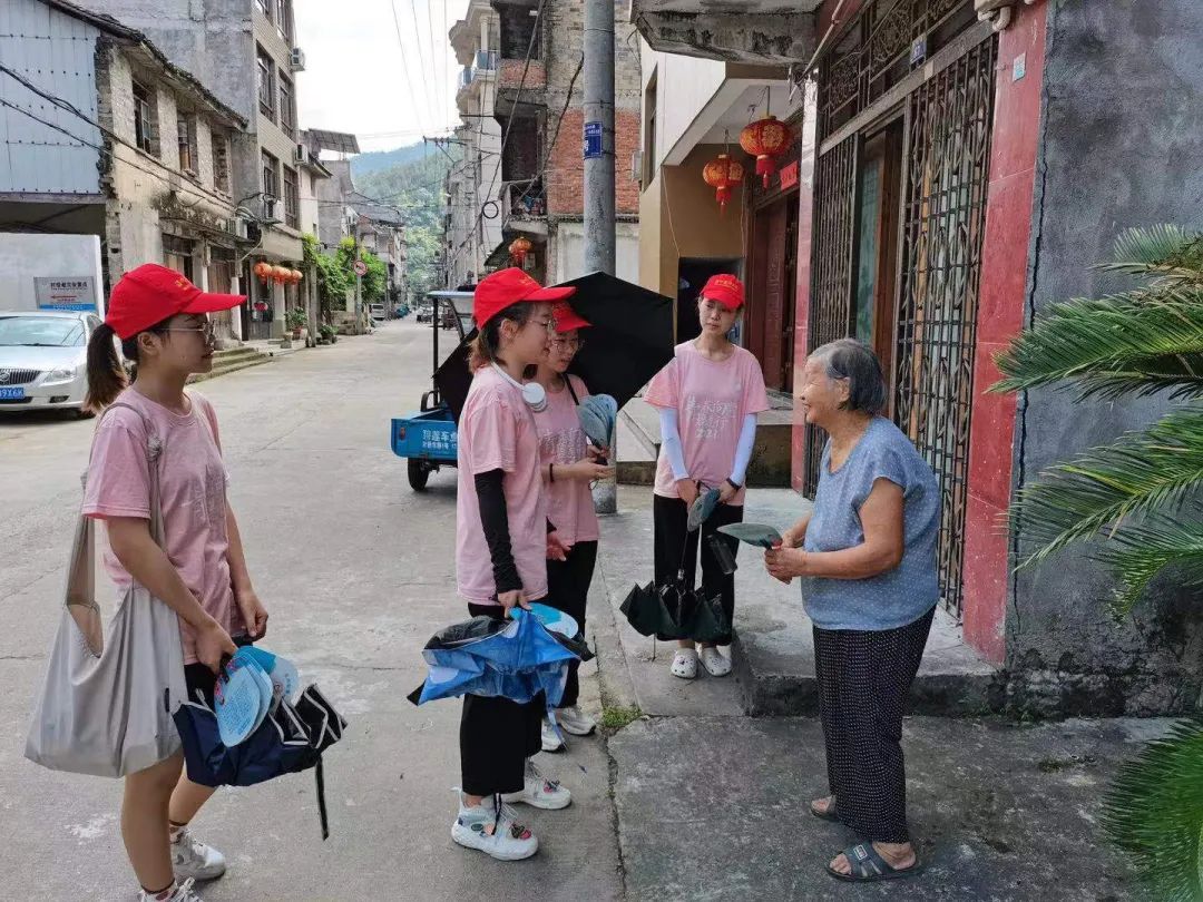 实践队队员通过分发“宣传扇”等宣传方式,引导当地老人于山川书院接受义诊服务。村民们亲切的话语、淳朴的笑容不断拉近与实践队员的距离。宣传中,实践队队员立足专业实际,为老人们进行健康常识科普,提出“合理膳食”“定时监测”“健康锻炼”等意见。