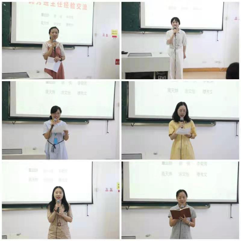 随后,进行了优秀导师工作经验交流环节,导师董超群、陈侠、李菊芳、黄天烨、涂文怡、穆秀文分别就如何快速熟悉班级同学,如何进行班级管理,如何抓好班级学习,如何指导学生做科研,如何对学生进行安全教育等主题进行了导师经验分享。