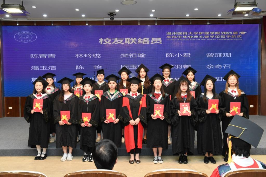 2021届毕业生有17位学子获浙江省优秀毕业生称号,26位学子成功考取研究生,更有学生在各类创新创业大赛、全国网球比赛等各种赛事中屡获佳绩。为激励毕业生砥砺奋进、笃行致远,李旭东书记为省优毕业生代表颁发证书,张春梅副院长为获得卓越护生考研奖的同学颁发奖励证书。“收到这份证书之后我很激动,内心充满了自豪感,今后定不负众望,砥砺前行。”省优毕业生代表来初阳如是说。活动现场,学院还聘任了20位同学为校友联络员,杨晔琴副院长为校友联络员颁发聘书。