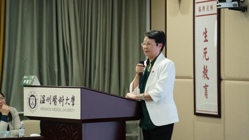 罗冀兰作题为“临终关怀医护专业人才培养之展望”的主题演讲。她从国家政策、发展现状、学科性质、团队配置和素质培养五个方面进行了讲演,提倡从事临终关怀的医生需要具备仁心仁术、护士需具备关怀照护的素质,以高标准严格要求自己,为患者生命历程的终点画上圆满的句号。