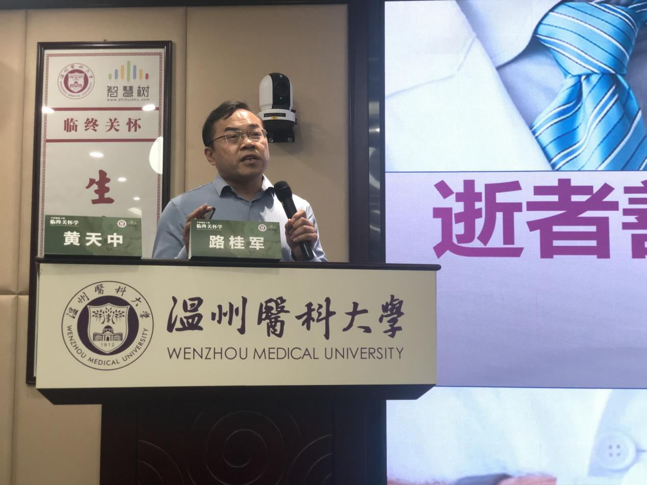 路桂军作题为“逝者善终,生者善别”的主题演讲。他从临床真实案例引入,提出疾病是医生眼中的世界,痛苦是患者心中的苦难。在医学模式变迁的背景下,他总结了心理和灵性的区别,灵性和宗教的区别。医务人员应当帮助患者减轻痛苦,尊重患者的生命,维护其生命尊严。同时,他认为人类在应对丧亲之痛时具有文化多样性,不同文化背景下的社会意涵可以帮助失去亲人的人们获得康复,也是帮助他们融入社会的一种方式。