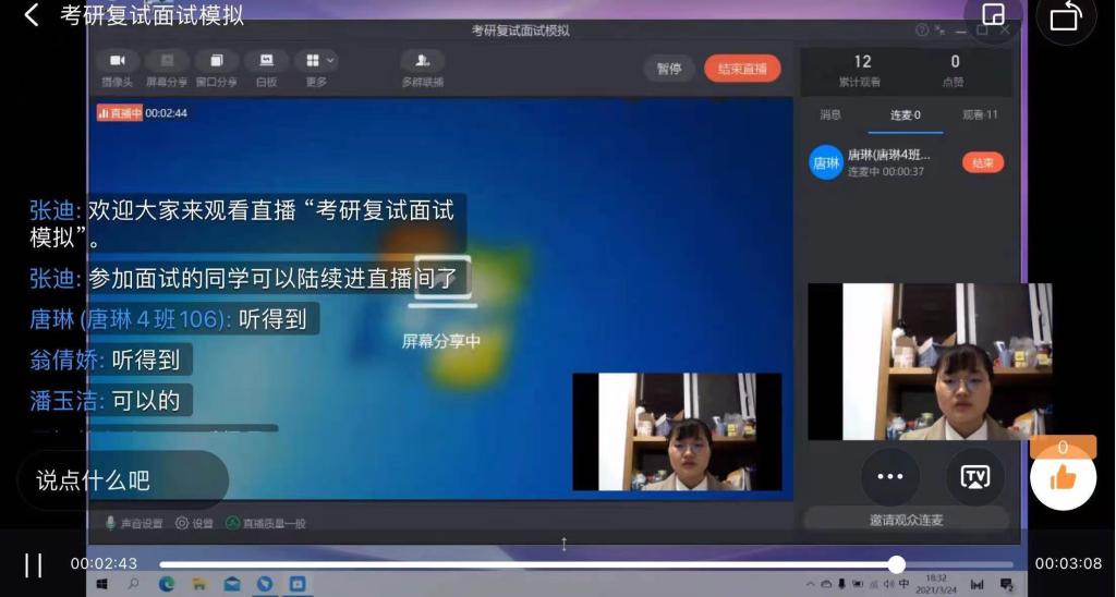 随着2021年硕士研究生国家线和各院校复试分数的陆续公布,为做好学院学生考研复试指导工作,3月24日,52AV 就业指导服务中心线上线下齐发力,开展2021届考研模拟面试活动,为广大护生的研学梦蓄能助力。