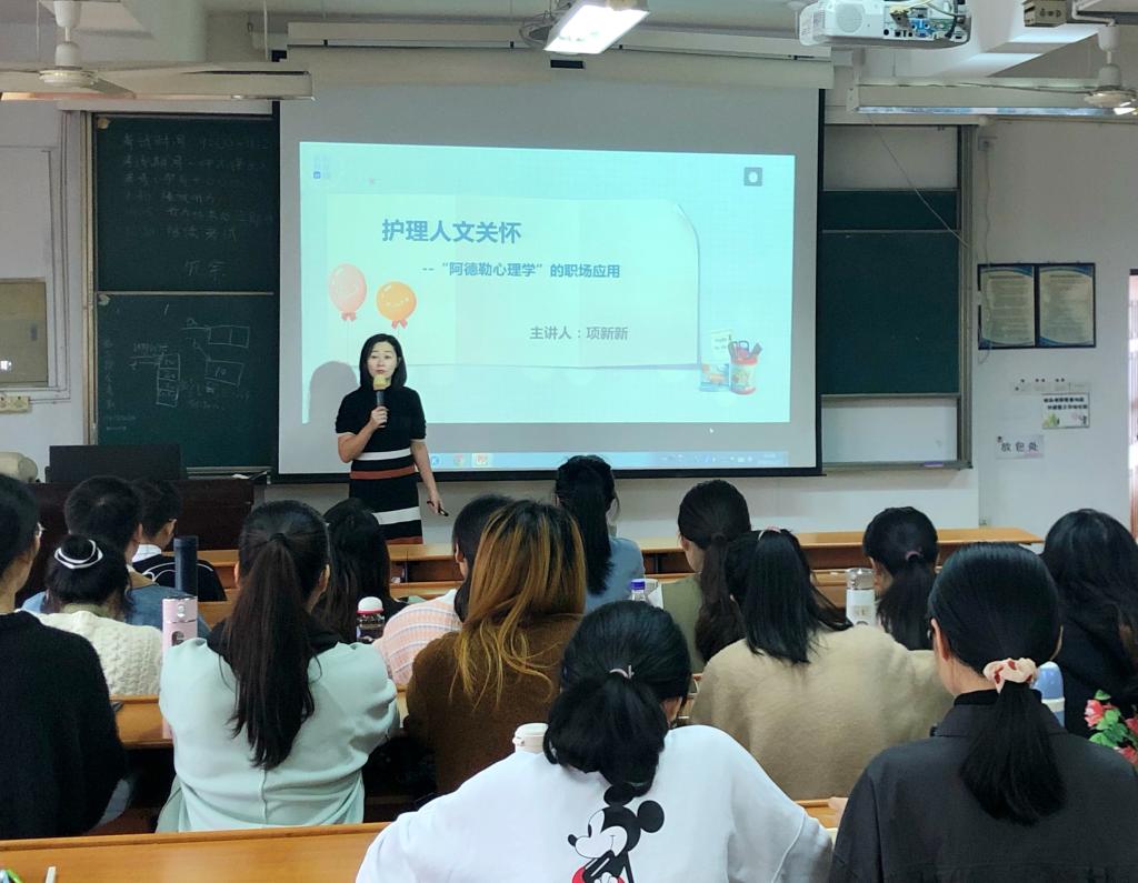 为了进一步缓解研究生学业和人际关系压力,促进研究生身心健康发展,提高研究生综合素质,11月27日下午,52AV 在7DJ406教室组织举办第十五期研究生沙龙。本次活动特别邀请国家二级心理咨询师、国际鼓励咨询师项新新老师作为主讲人,讲解护理人文关怀——“阿德勒心理学”在职场的应用,2020级全体研究生参与了此次活动。