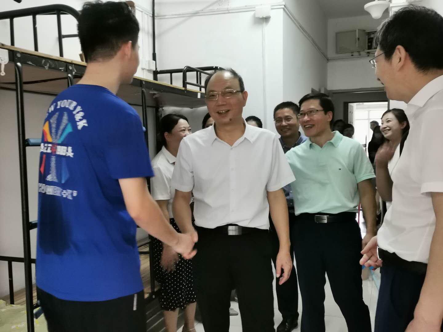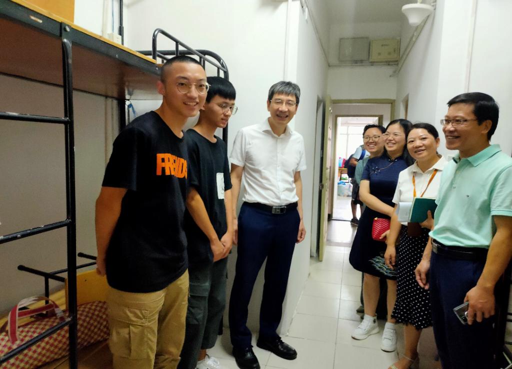 上午10:00,校党委书记吕一军、院党委书记李旭东、院长陈成水及班子成员、学院学工办、团委老师和新生辅导员到达迎新现场和学生寝室看望新生。“老家是哪里的?”“东西收拾的怎么样了?”,校领导吕一军亲切询问新生勉励大家说:“爸妈不能陪同进校,有好处也有坏处,坏处是要自己整理,好处是这样可以让同学们尽快的独立起来,适应大学生活,融入大学校园。”当吕书记看到52AV 今年新生中不乏男孩子的身影,很是赞赏说到:“护理专业不是仅仅适合女孩子,男孩子也非常的适合,在医院里男护士是非常稀缺的,医院里有很多重要的特殊的护理岗位”。新生们热情地和老师们打着招呼,“我家就在温州,我自己选的护理专业,很开心能做一名护士。”“还没参观过我们学校呢,我要抓紧去看看!”同学们纷纷表达来到温医内心的喜悦和憧憬。