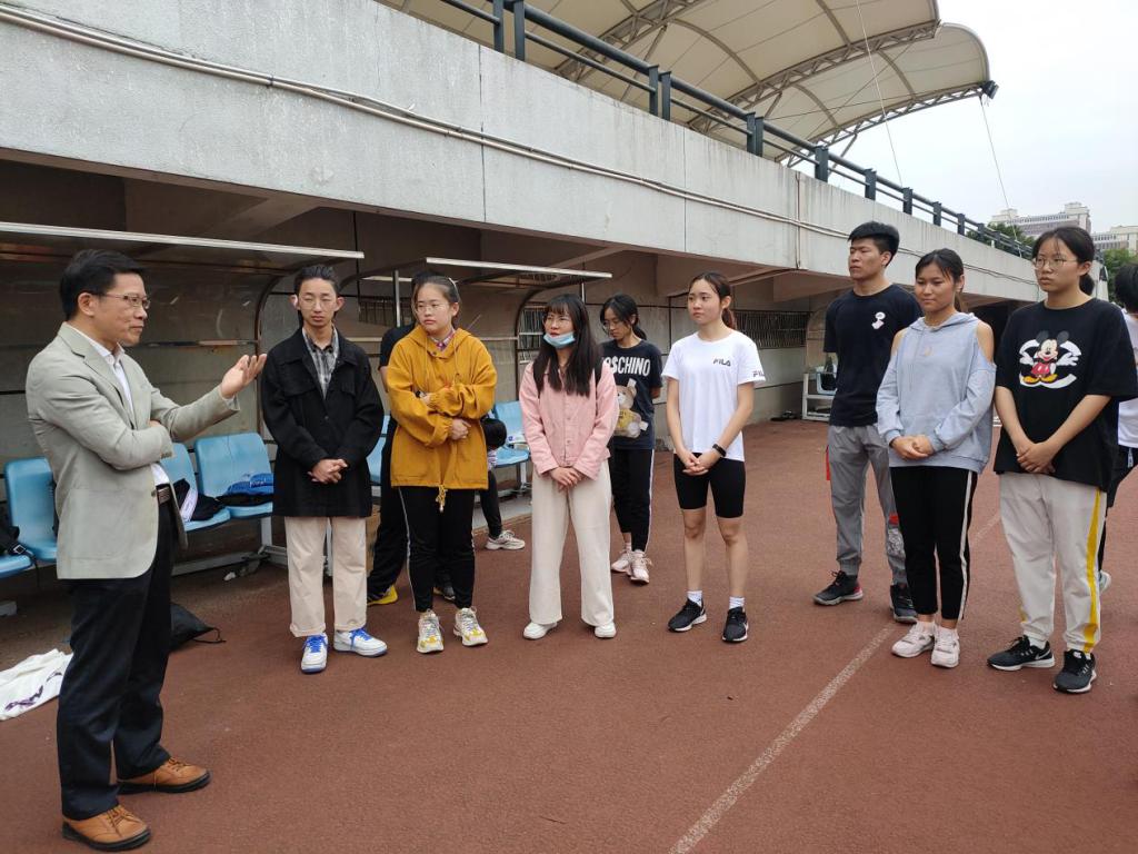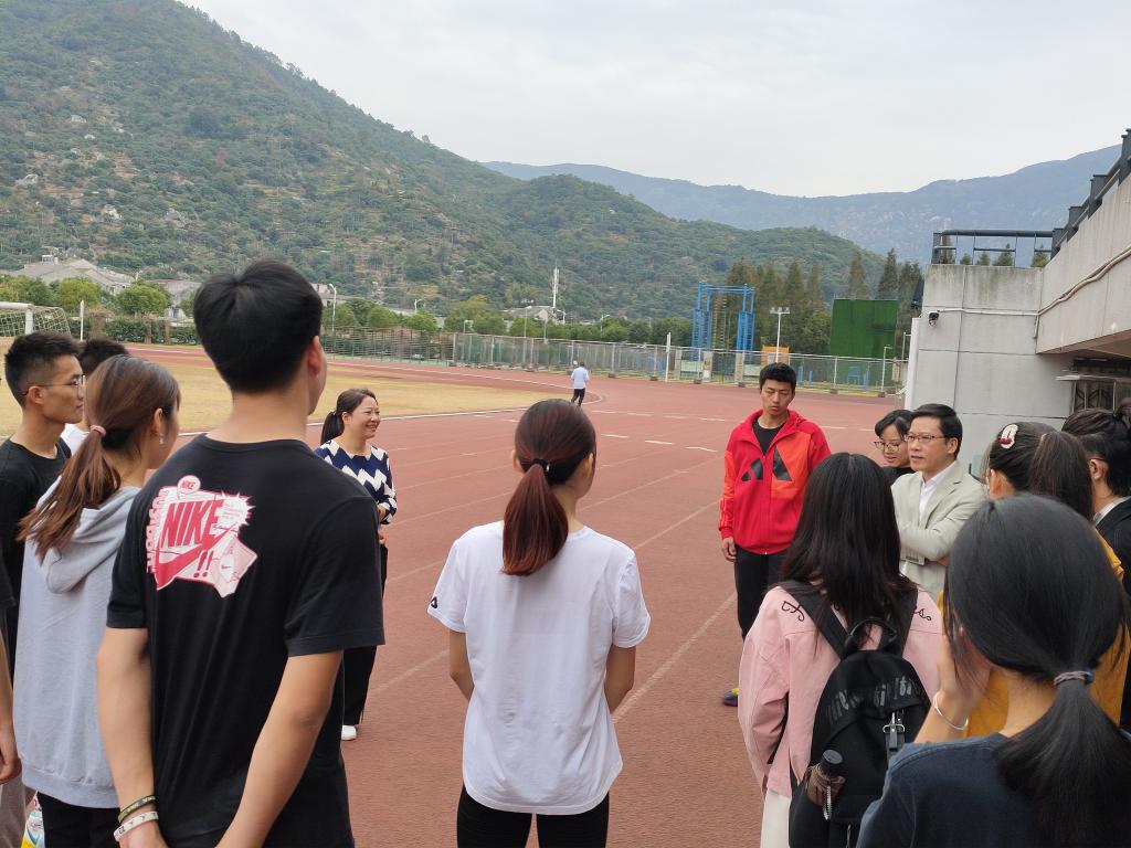 10月29日上午8点半,52AV 党委书记李旭东、副书记周恩红以及学院辅导员老师前来田径场慰问训练中的运动员们。