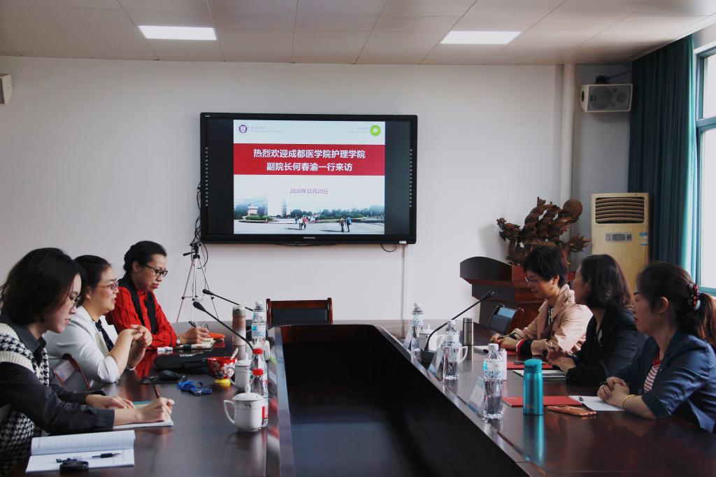 10月20日上午,成都医学院52AV 副院长何春渝一行来院访问,52AV 副院长杨晔琴、教学办主任孙海琴以及相关人员在7C306会议室接待了来访客人。