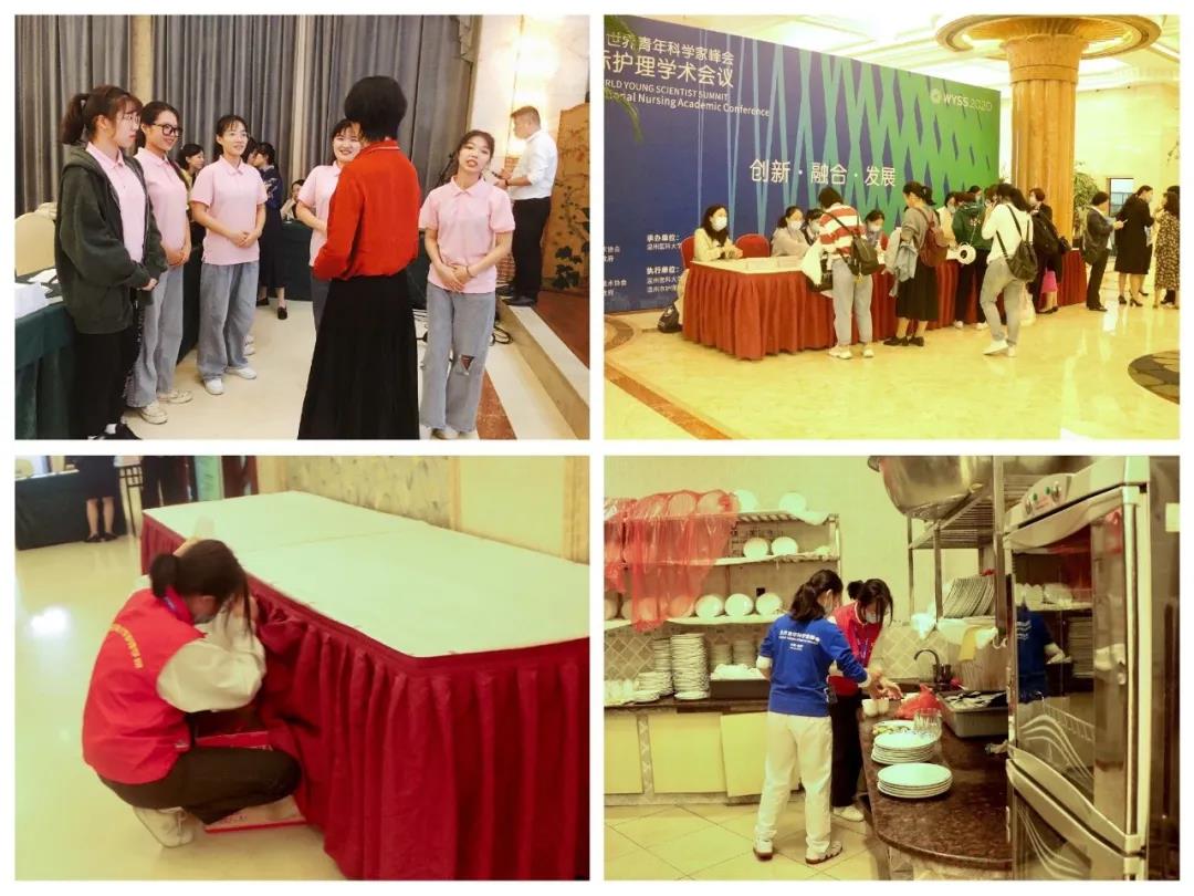 镜头之外,还有更多的台前幕后,为会议的顺利召开保驾护航。2020世界青年科学家峰会国际护理学术会议已经落下帷幕,但是台前幕后的护理师生们仍在继续努力,她们将以此次会议为新的起点,不断为学院发展添砖加瓦、为护理事业的美好明天不懈奋斗。