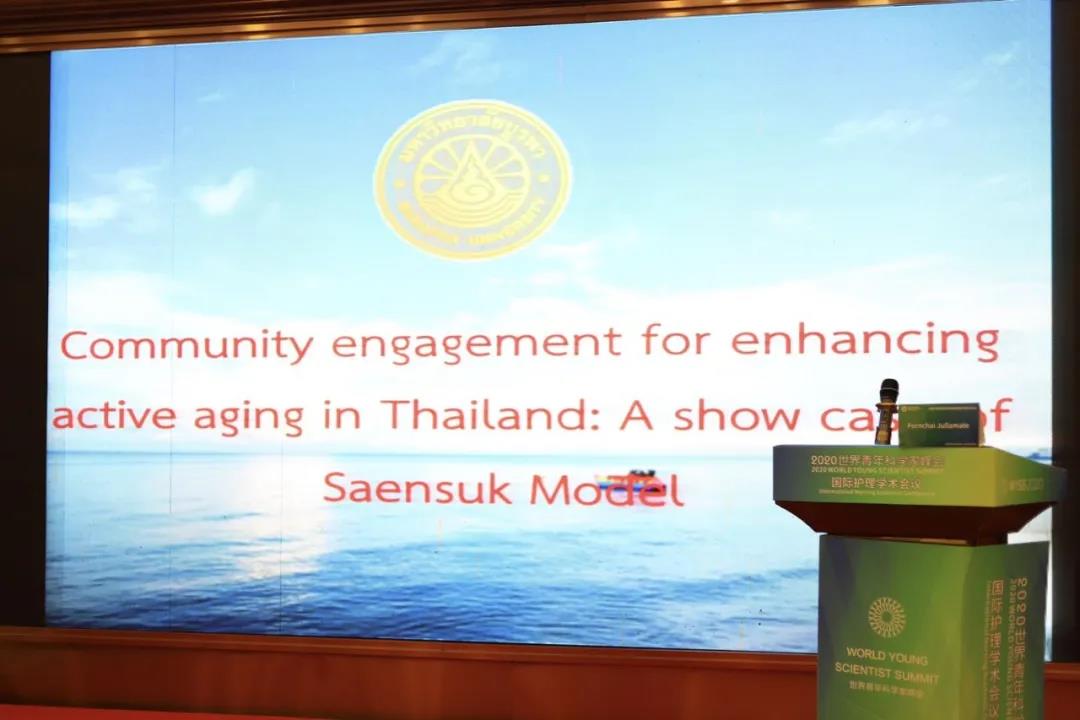 彭揣·朱拉马特作题为“泰国社区参与促进积极老龄化:以桑塞克模式为案例”的主题演讲,介绍了泰国春武里省社区综合项目的起步、进展、成果等方面内容。该项目建立多学科团队,通过开展社区团体活动及家庭访视,为老年人提供康复锻炼、认知功能训练、口腔肌肉训练、饮食护理等,改善老年人的功能状况,提高老年人的生活质量,促进社区老年人的积极老龄化,为今后在中国开展类似的社区老年护理项目提供了宝贵的经验。